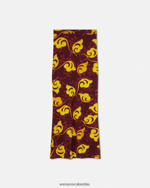 una falda midi elástica sin cordones con estampado de ramitas en toda la prenda y cinturilla elástica.