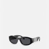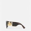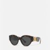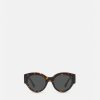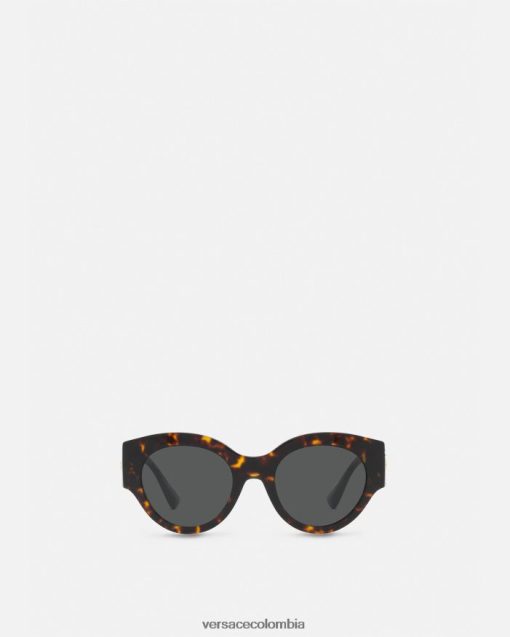 Gafas de sol redondas de acetato de carey, acentuadas por un emblema de medusa adornado con cristales en las sienes.