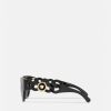 Glamurosas y muy versaceas, estas gafas de sol cuentan con patillas adornadas con un atrevido esmalte de medusa sobre un detalle de cadena. El estilo en forma de fantasma cuenta con una montura negra clásica y lentes de color gris oscuro.