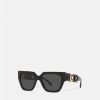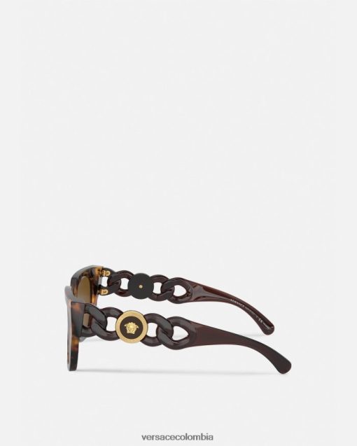 Este elegante estilo cuadrado presenta monturas de acetato y las patillas anchas están adornadas con un esmalte de Medusa sobre detalles de cadena.