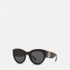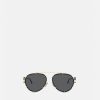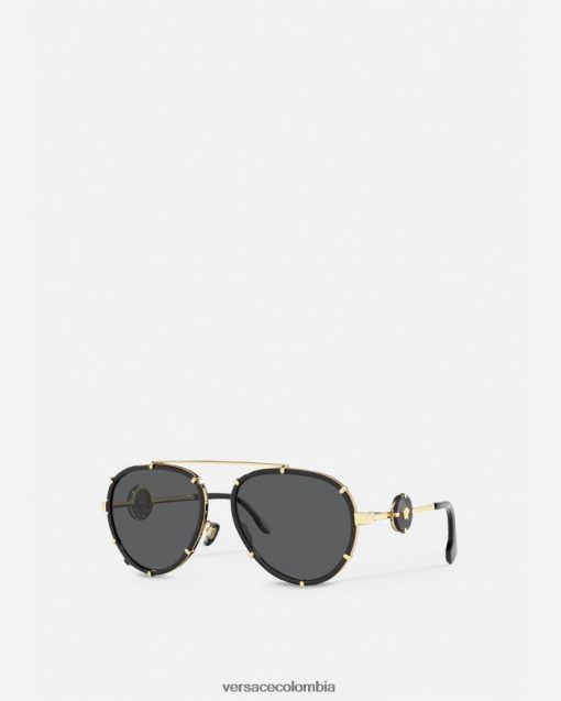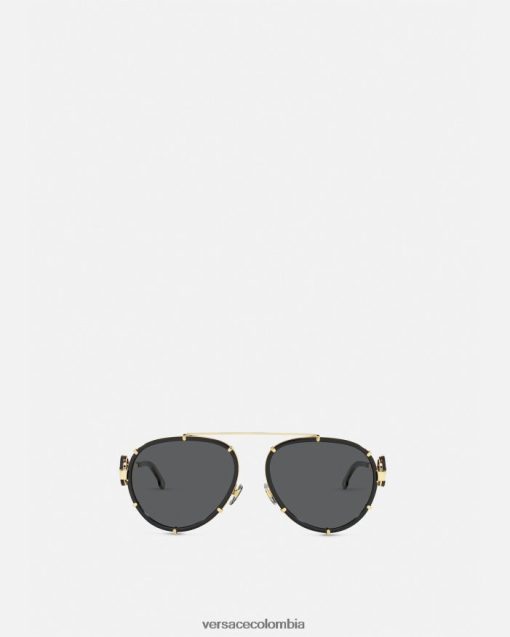 Un diseño muy versace: estas gafas de sol son un accesorio que no pasa desapercibido. El estilo piloto versátil presenta una montura negra y lentes de color gris oscuro. Las patillas doradas están enriquecidas con un icónico detalle de medusa esmaltada. El modelo viene con una correa ancha de neopreno y cuero con acabados de Medusa.