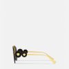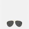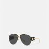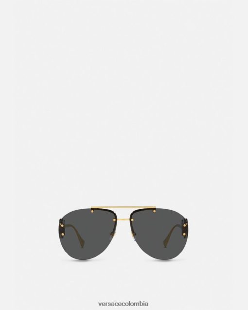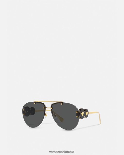 Gafas de sol de aviador de metal con puente nasal doble, acentuadas por dijes de medusa doble en las patillas.