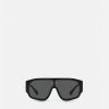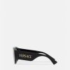 Un estilo de pasarela llamativo, estas gafas de sol de aviador de acetato grueso están realzadas con letras laterales de Versace.