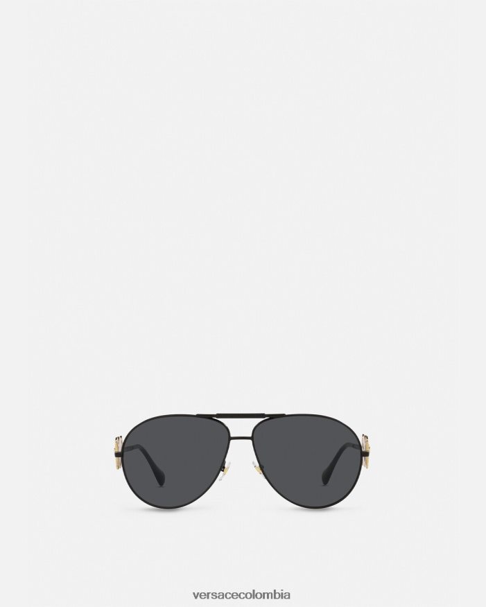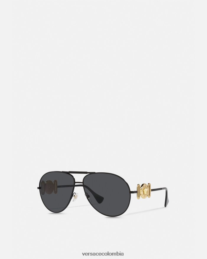 Estas gafas de sol estilo aviador Medusa Biggie tienen monturas finas de metal, detalladas con un puente nasal doble y piezas metálicas de Medusa en las patillas.