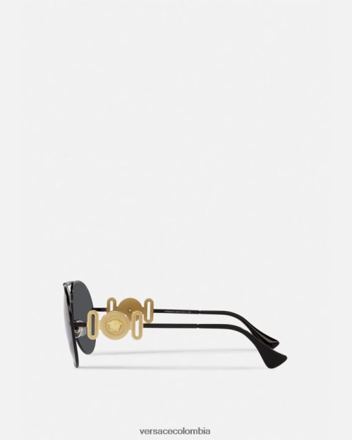 Estas gafas de sol estilo aviador Medusa Biggie tienen monturas finas de metal, detalladas con un puente nasal doble y piezas metálicas de Medusa en las patillas.