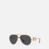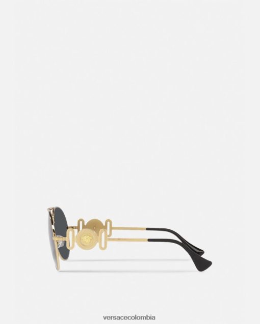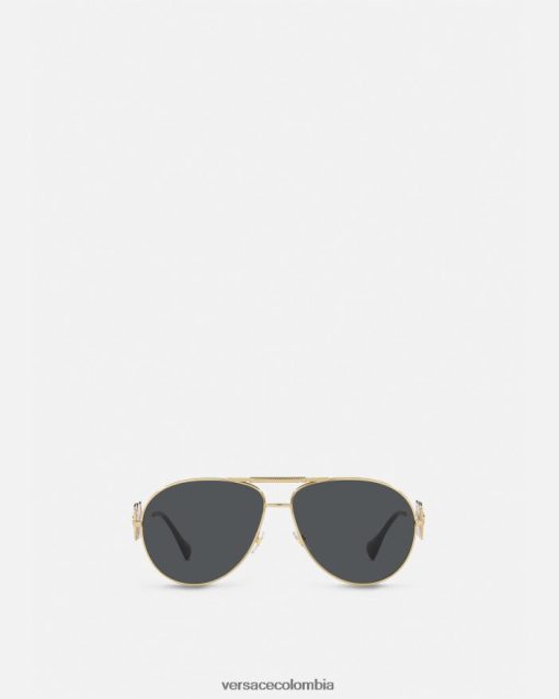 Estas gafas de sol estilo aviador Medusa Biggie tienen monturas finas de metal, detalladas con un puente nasal doble y piezas metálicas de Medusa en las patillas.