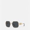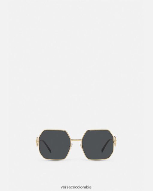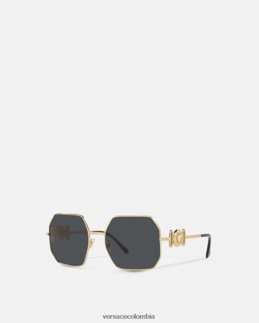 Estas gafas de sol heptágono Medusa Biggie tienen monturas finas de metal, detalladas con un puente nasal y piezas metálicas de Medusa en las patillas.