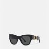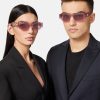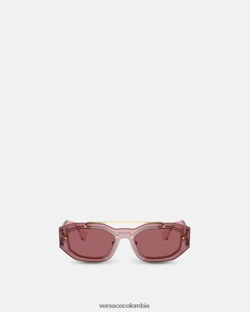 Inspiradas en la cultura hip-hop de los 90, estas gafas de sol cuentan con monturas de acetato transparente y patillas anchas adornadas con medusa. un puente nasal doble de metal acentúa la forma rectangular y las lentes tonales.