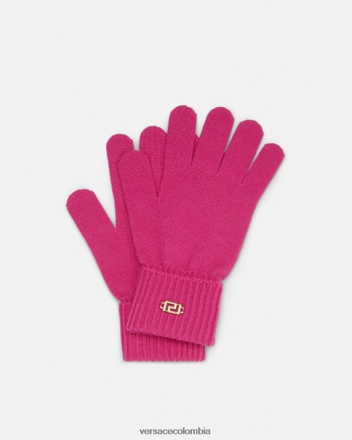 Estos guantes, confeccionados en punto acanalado con una mezcla de lana, están realzados por una única pieza metálica de greca en el puño vuelto hacia arriba.