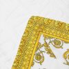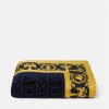 una lujosa toalla de playa de felpa de algodón suave que presenta un motivo tonal de versace en toda la prenda con bordes en contraste con estampado barroco.
