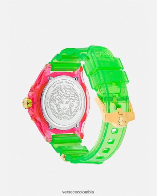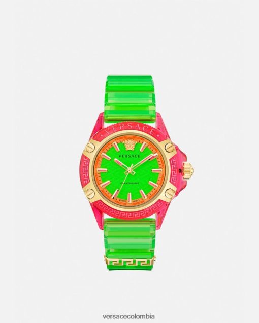 - esfera: esfera verde lima con medusa; logotipo de versace a las 12 h