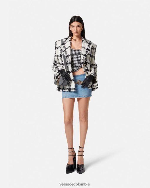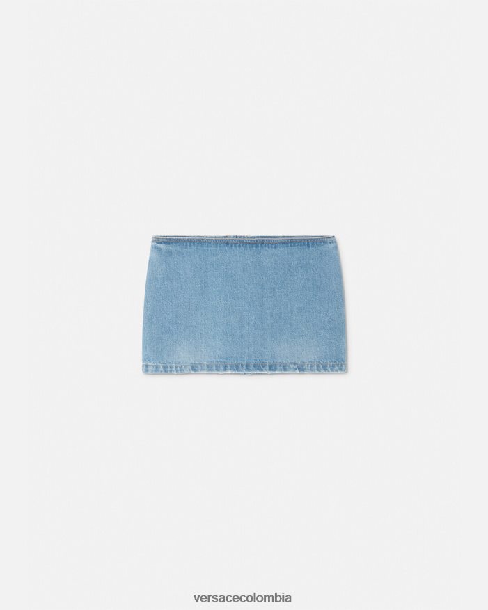 Esta minifalda vaquera, un básico del armario de Versace, tiene un cierre de cremallera Medusa en el reverso con un parche de cuero con el logo.