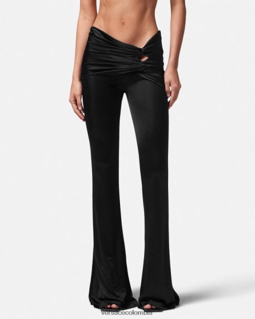 versace presenta dua lipa x versace, una colección cápsula codiseñada con dua lipa. Estos pantalones fluidos de punto presentan detalles anudados recortados en la cintura con detalles fruncidos.