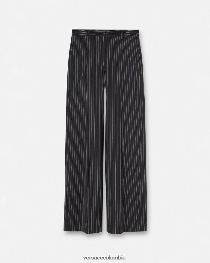 Estos pantalones sastre en mezcla de lana presentan elegantes rayas diplomáticas y un corte ancho para una silueta poderosa.