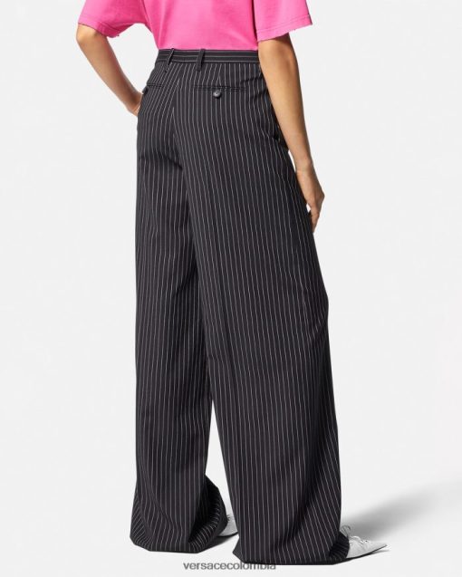 Estos pantalones sastre en mezcla de lana presentan elegantes rayas diplomáticas y un corte ancho para una silueta poderosa.