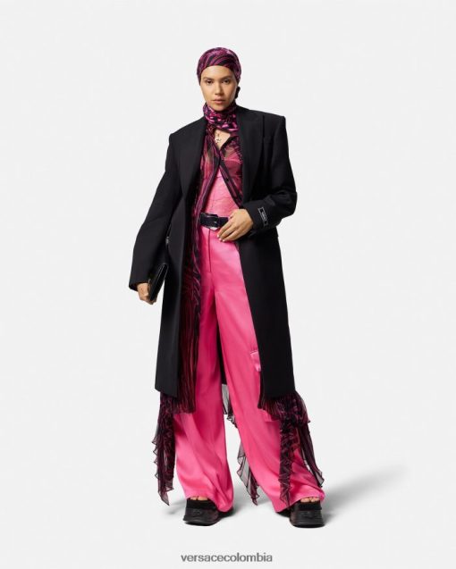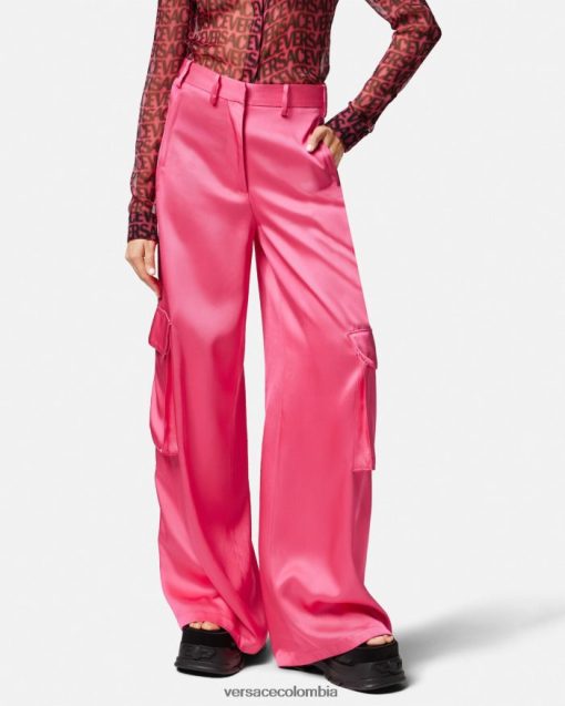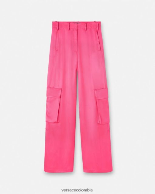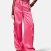 Pantalón cargo ancho con acabado satinado fluido y bolsillo trasero con cremallera.