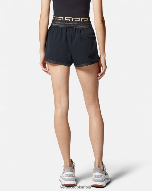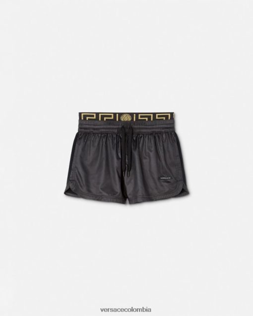 Estos pantalones cortos deportivos de dos tejidos están detallados con una cinturilla con borde de greca en capas de Versace, completada con una cinturilla con cordón, un bolsillo con cremallera oculto en la parte posterior y bolsillos forrados de malla transpirable en los laterales.
