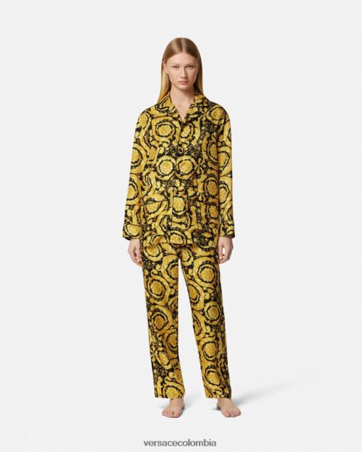 Confeccionados con seda suave, estos pantalones de pijama cuentan con un estampado barroco por toda la prenda y cuentan con una cinturilla elástica.