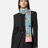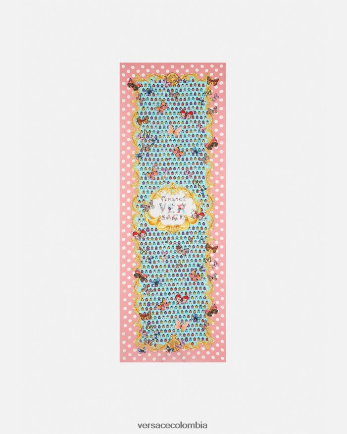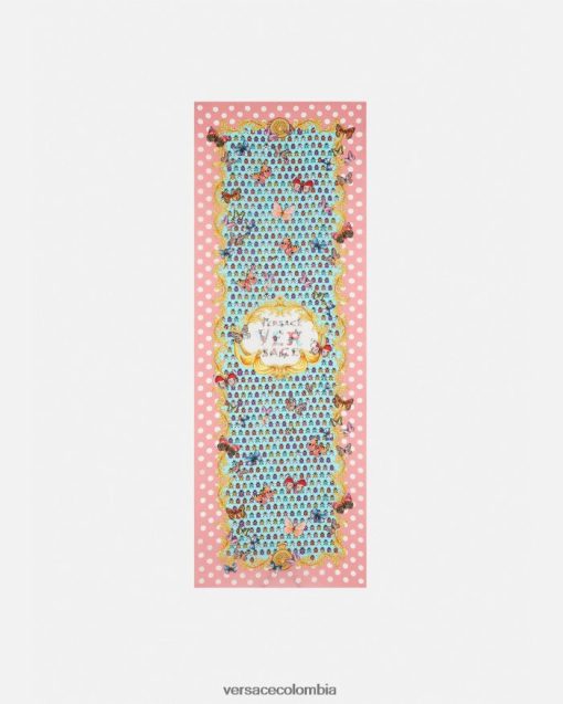 Esta bufanda de seda presenta un estampado de archivo renovado de los años 90 con mariposas y mariquitas sobre un fondo de lunares y adornos barrocos.