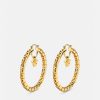 Un par de aretes asimétricos con grabados de greca y un dije de medusa en un lado. Todos los productos de joyería de Versace no contienen plomo ni níquel. Todos los materiales son hipoalergénicos.