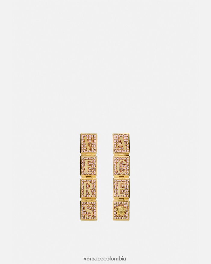 Estos aretes colgantes, con un diseño de eslabones de cadena, presentan motivos de azulejos grabados con letras del logotipo enriquecidas con cristales. Todos los productos de joyería de Versace no contienen plomo ni níquel. Todos los materiales son hipoalergénicos.