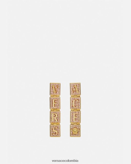 Estos aretes colgantes, con un diseño de eslabones de cadena, presentan motivos de azulejos grabados con letras del logotipo enriquecidas con cristales. Todos los productos de joyería de Versace no contienen plomo ni níquel. Todos los materiales son hipoalergénicos.