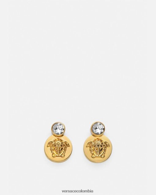 Pendientes con una gota de cristal y un dije de Medusa grabado. Todos los productos de joyería de Versace no contienen plomo ni níquel. Todos los materiales son hipoalergénicos.