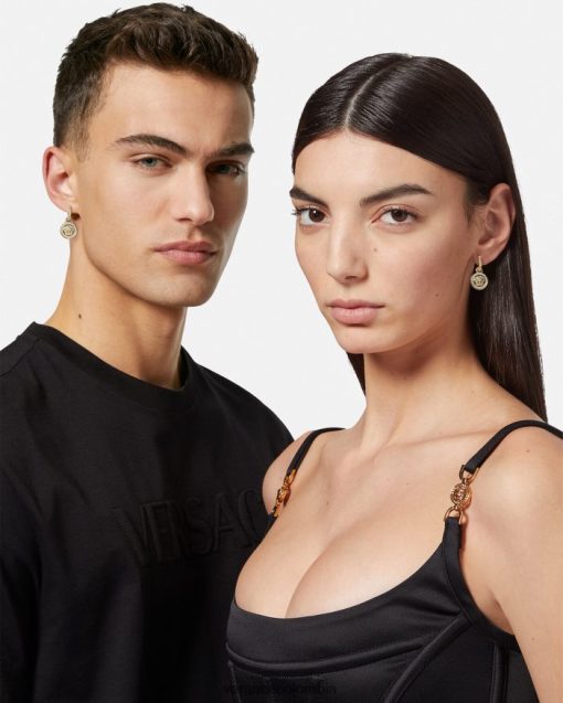 Aretes colgantes adornados con cristales con dijes de la medusa y grabados de greca. Todos los productos de joyería de Versace no contienen plomo ni níquel. Todos los materiales son hipoalergénicos.