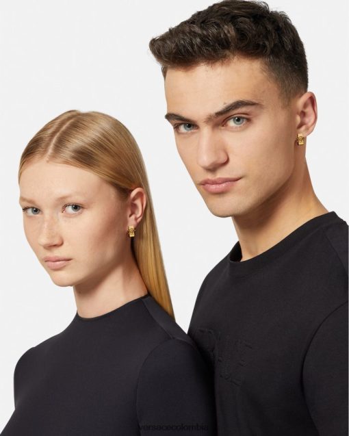 un par de aretes rectangulares de medusa con cierre de bisagra. Todos los productos de joyería de Versace no contienen plomo ni níquel. Todos los materiales son hipoalergénicos.