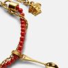 una pulsera de cadena con cuentas que presenta una placa de medusa esmaltada y dijes de cubiertos alternos. Ninguno de los productos de joyería de Versace contiene plomo ni níquel. Todos los materiales son hipoalergénicos.