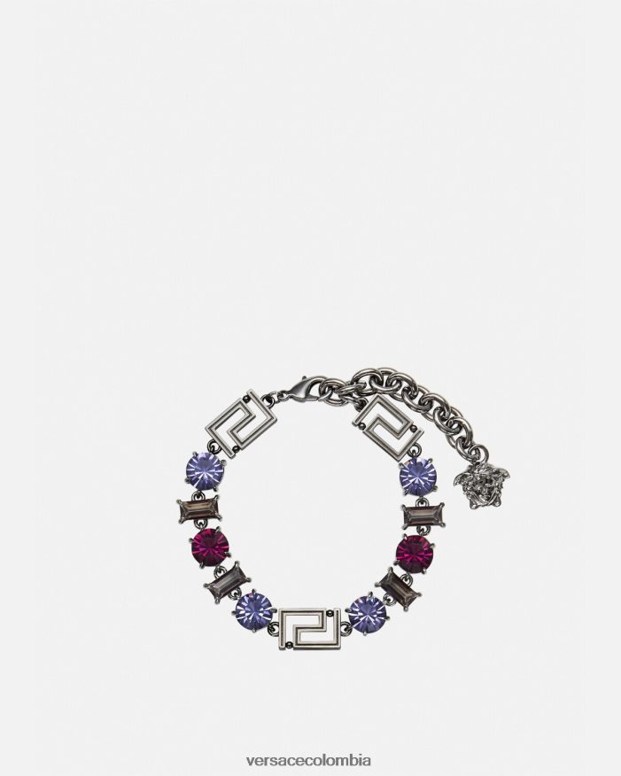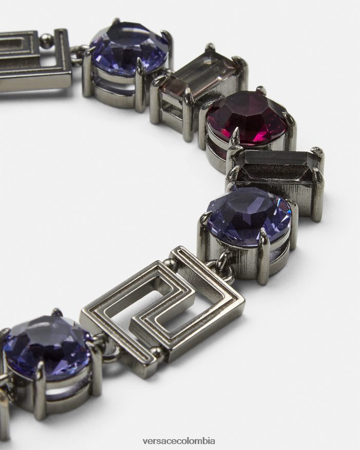 una pulsera de cadena ajustable con cristales multicolores y eslabones de greca. Todos los productos de joyería de Versace no contienen plomo ni níquel. Todos los materiales son hipoalergénicos.