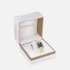 - caja: caja rectangular ip champagne de 28,8×26 mm con logo de versace a la derecha y greca a la izquierda