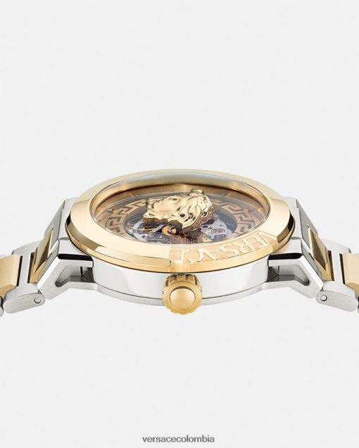 - esfera: esfera bico (ss & ip champagne) esqueletizada con medusa entre dos cristales; greca en el aro interior