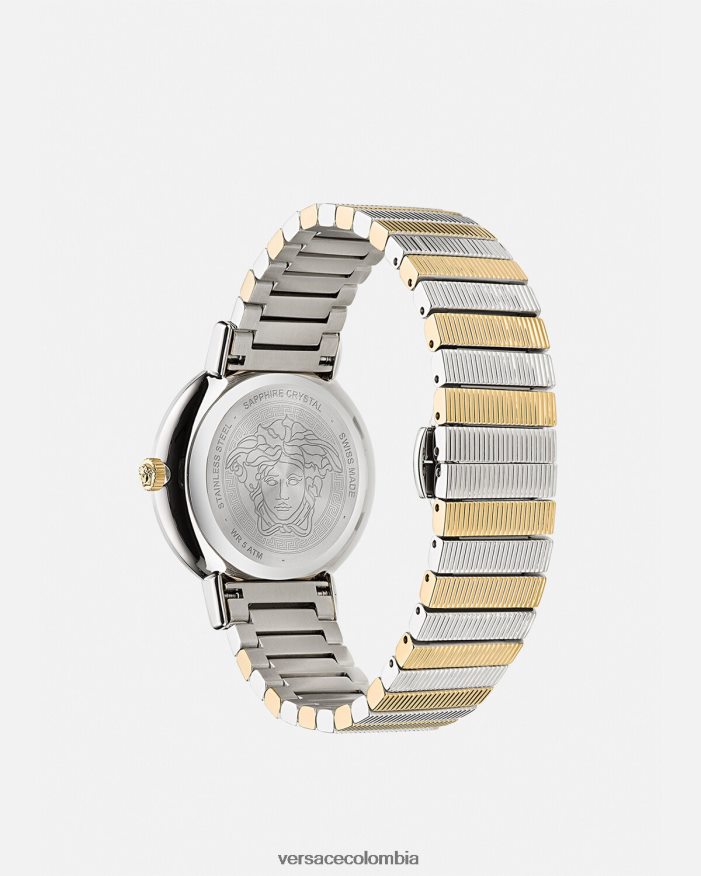 - esfera: esfera color champán con greca en la esfera interior; logo medusa y versace a las 12h
