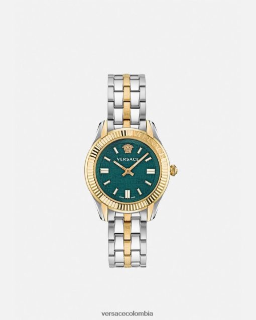 - caja: ip champagne y caja de acero inoxidable con letras versace en el anillo superior