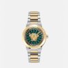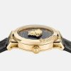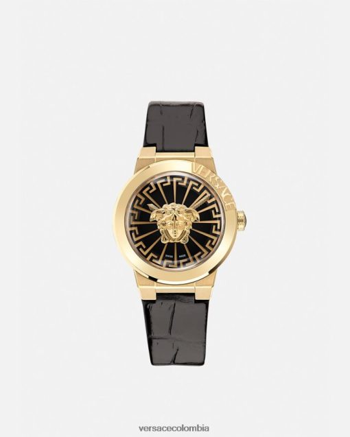 - caja: redonda de IP color champán de 38 mm con logotipo de Versace en el anillo
