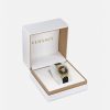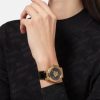 Este elegante reloj presenta una medusa tridimensional engastada entre dos cristales con un sistema de movimiento de dos manecillas. un patrón de asa de greca aparece en la esfera interior, mientras que una letra de Versace grabada en el anillo enmarca la caja. El accesorio está rematado con una banda de piel con efecto de cocodrilo.