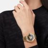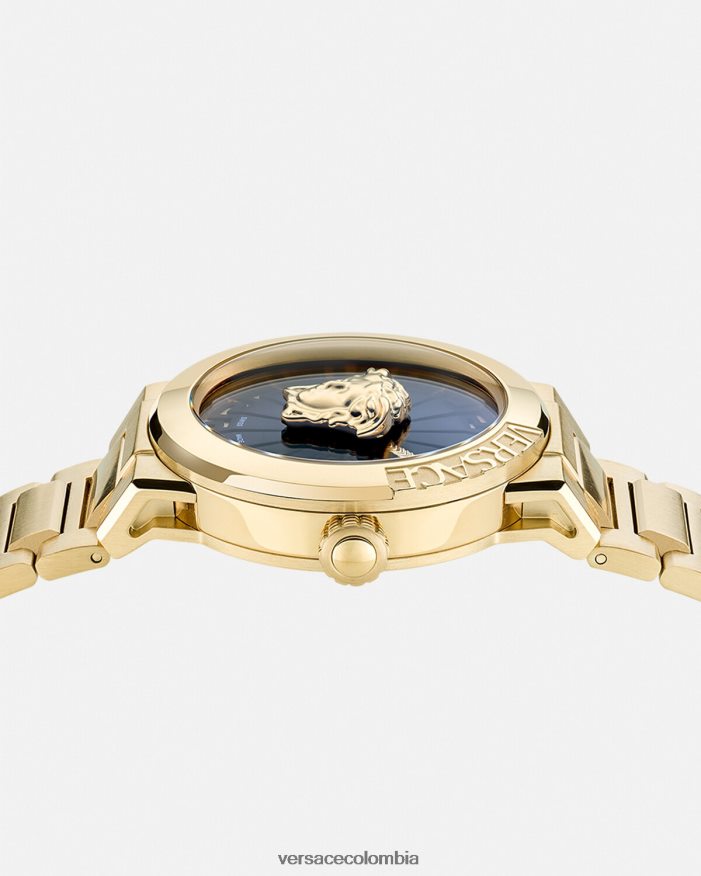 - caja: redonda de IP color champán de 38 mm con logotipo de Versace en el anillo