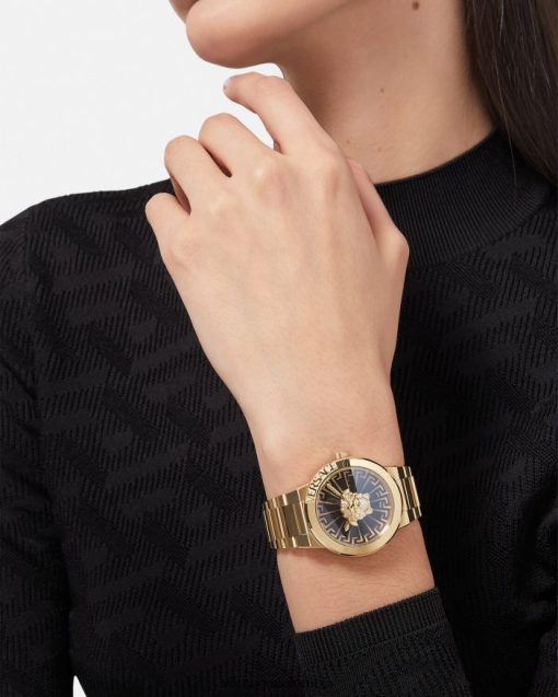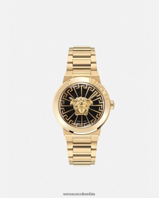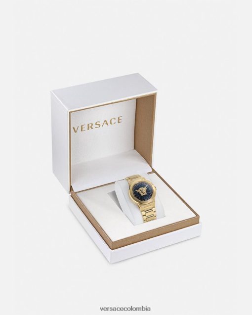 - caja: redonda de IP color champán de 38 mm con logotipo de Versace en el anillo