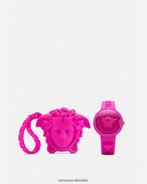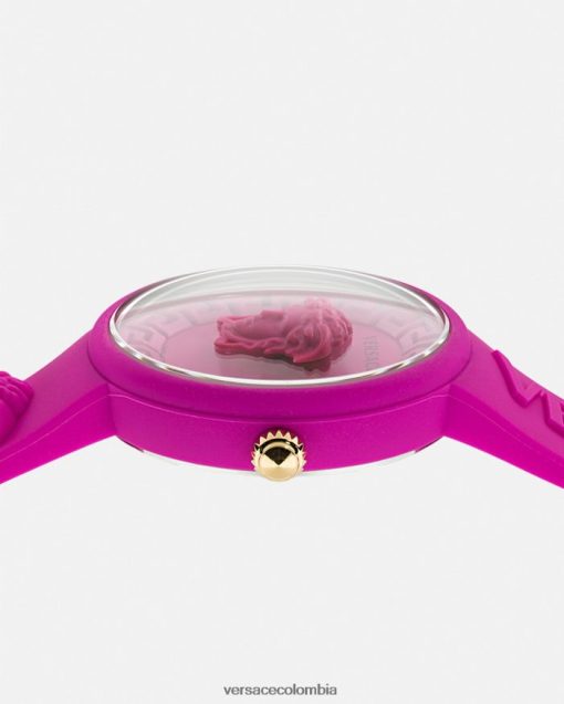 - pulsera: correa de silicona fucsia con medusa 3d; Letras de Versace en 3D; hebilla de lengüeta