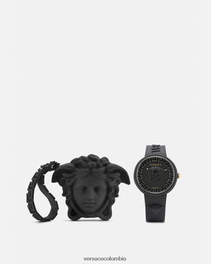 - pulsera: correa de silicona negra con medusa en 3D; Letras de Versace en 3D; hebilla de lengüeta