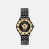 - esfera: anillo interior ip champagne y esfera lila con logotipo de versace