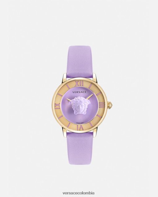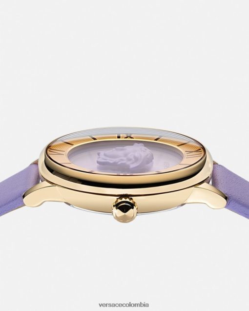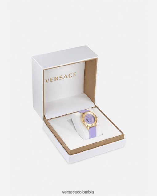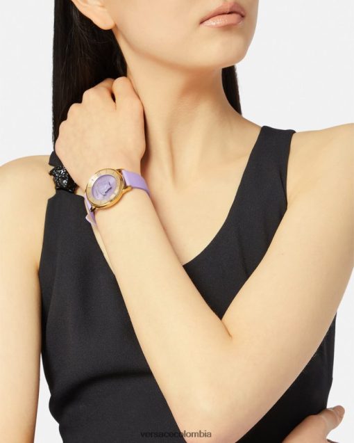 - esfera: anillo interior ip champagne y esfera lila con logotipo de versace
