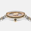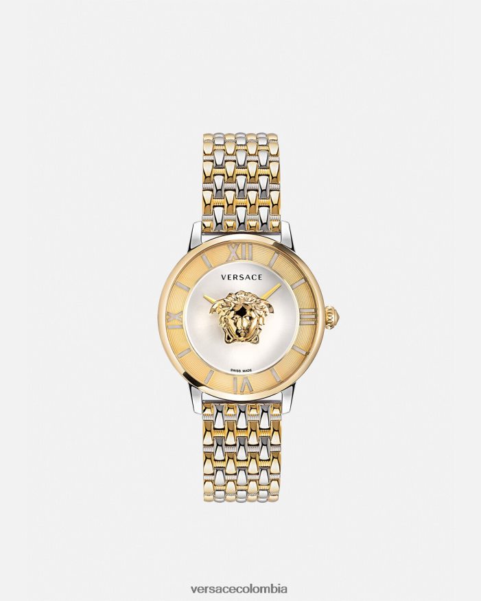 - esfera: anillo interior ip champagne y esfera de acero inoxidable con logotipo de Versace