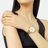 Este reloj femenino de Versace presenta una medusa tridimensional “flotante” y números romanos en la esfera. El reloj está rematado con una banda de metal.