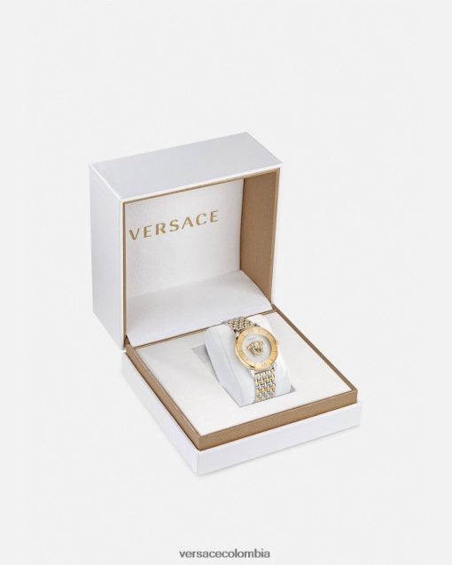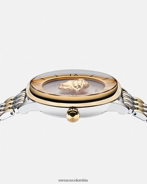 - esfera: anillo interior ip champagne y esfera de acero inoxidable con logotipo de Versace