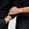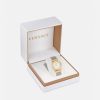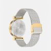 Este refinado reloj se caracteriza por las letras Versace en las asas que enmarcan la esfera. La esfera está enriquecida con una medusa tridimensional a las 12 h y un patrón de greca. El accesorio se completa con una banda de malla metálica. Todos los relojes Versace están garantizados por la marca “fabricación suiza”.