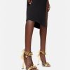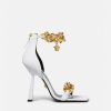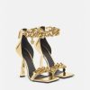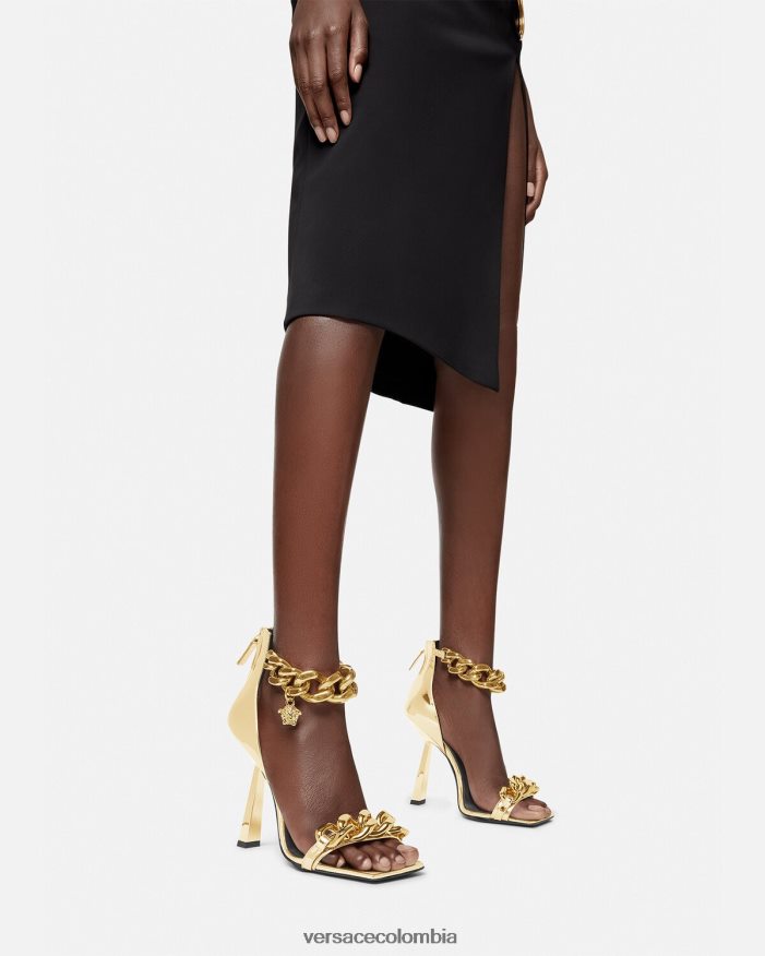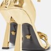 Elegantes con un toque de Versace, estas sandalias tobilleras de tacón alto son una adición atrevida a la ropa de noche. Confeccionado en piel de napa flexible, el modelo está enriquecido con una cadena dorada en el tobillo y las tiras de los dedos.