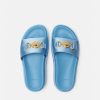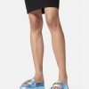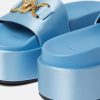 Estas sandalias de satén están adornadas con un emblema de Medusa ’95 adornado con cristales y están asentadas sobre una suela de plataforma.