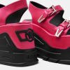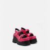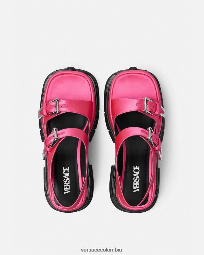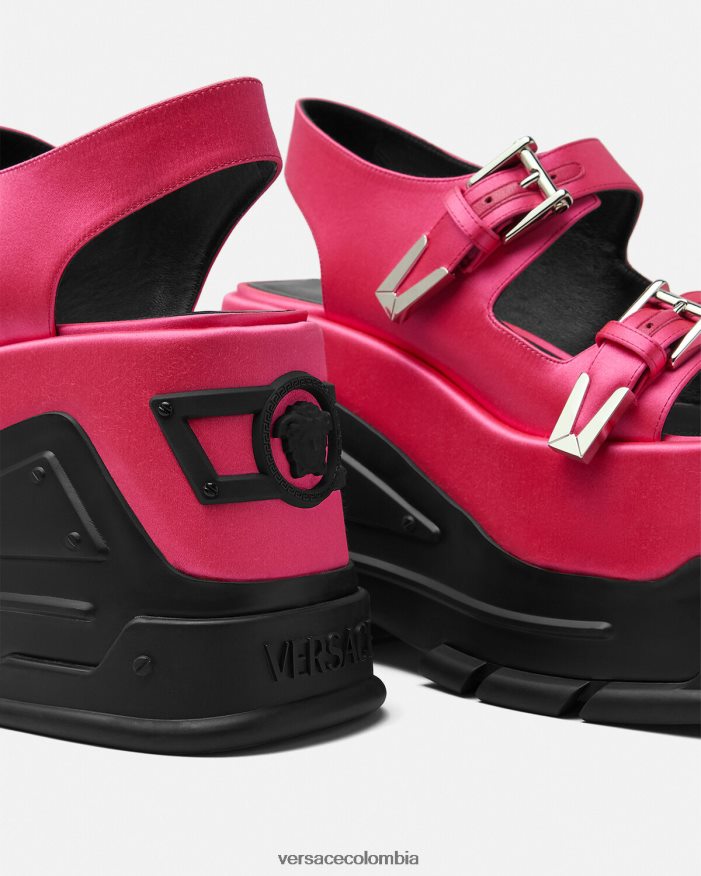 La línea de zapatos Medusa Anthem combina estilos inspirados en Mary Jane con una suela de goma con plataforma moldeada extragrande. Las inyecciones de goma de medusa tonal en las suelas y los herrajes en forma de V en las grapas completan las sandalias de satén.